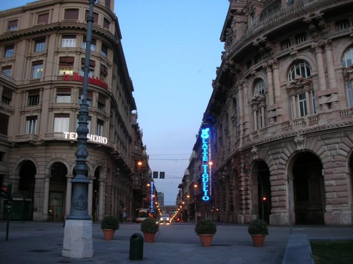 Dále vyjdeme podél katedrály San Lorenzo na Piazza de Ferrari, nenecháme se ujít ulici Via XX Settembre, kde rychle nakoukneme do zdejších obchodů a v její spodní části se zastavíme na Mercato Orientale, kde to neskutečně voní ovocem, zeleninou, rybami a delikatesami dovezenými z celé Itálie. Pak sejdeme dolů, na Piazza della Vittoria s typickou fašistickou architekturou. Vévodí jí Vítězný oblouk postavený na počest Janovanů padlých během první světové války. A také tam stojí gympl, na který chodil můj Janovan. Po cestě vám ještě ukážu ten Kolumbův dům, abyste ho viděli když už se tady narodil, ale sami hned uznáte, že je tak malinký, že ani nestojí za to do něj platit vstupné.