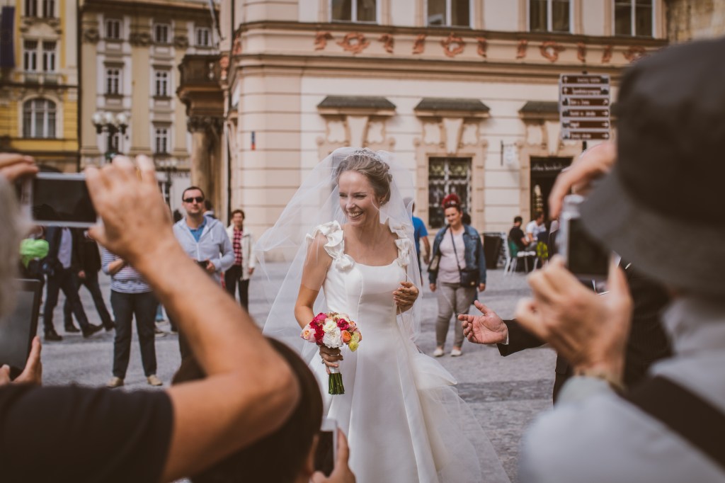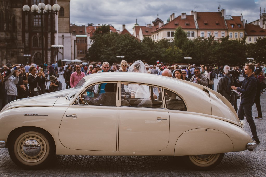 Vystupuji z bílého Tatraplánu na Staroměstském náměstí, můj táta a pohotový řidič tohoto motoristického skvostu mi pomáhají srovnat svatební šaty. A mně to dochází. Dnes se vdávám. V kostele na mě čeká můj budoucí muž, ten kudrnatý kluk, kterého jsem poznala před osmi lety na našem první studentském zahraničním dobrodružství. A najednou je tady, v Praze, s celou svojí rodinou a čekají jen na mě. U oltáře. Ihned se okolo mě tvoří hlouček italských turistů, kteří si mě fotí ze všech stran a obdivují mě jako Orloj, který je hned vedle, aniž by tušili, že jim rozumím každé slovo. „Mi sposo con un Italiano!“ (Beru si Itala) reaguji na ně, čímž je totálně odrovnávám a mezi řádky zvu k nahlédnutí do kostela. Mohou jen za bezpečnostní pásku, ale i tak jich je tam po dobu obřadu nalepených dost.