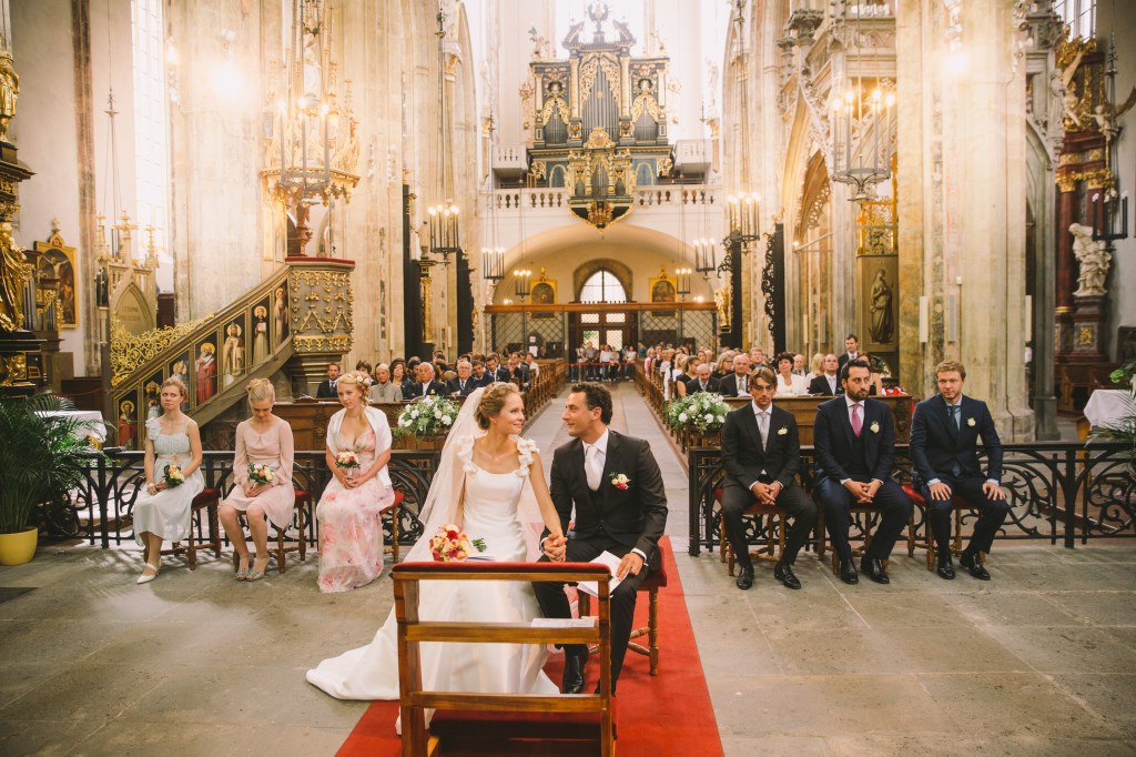Zkombinovat očekávání všech tak bylo dost náročné. Přesto, že jsme se brali v Čechách, nebylo mým záměrem udělat vše echt po česku. Už měsíc před termínem jsem všem rozeslala informace o tom, jaké zvyky budeme kombinovat, aby byli v obraze. Chtěla jsem, aby mě ženich poprvé viděl až před oltářem (v Itálii se potkávají už před kostelem), aby na sobě měli všichni přišpenldelnou myrtu (v Itálii se nedělá), aby nám všichni popřáli po obřadu přímo v kostele, ve špalíru (namísto italského zmatečného shluku před kostelem).