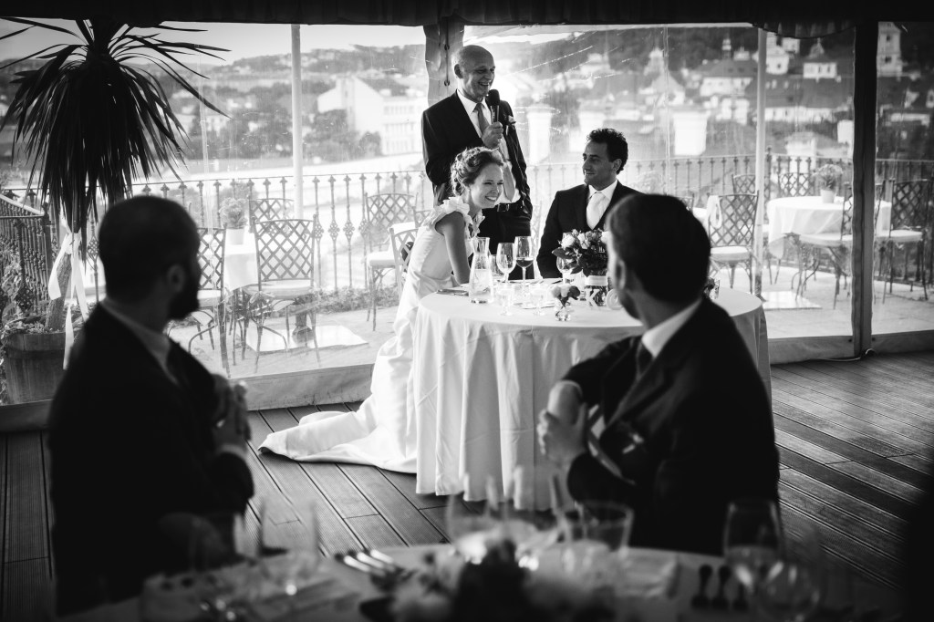 Sedíme s mým novomanželem u jednoho stolu, odděleni ode všech a jsme za to rádi. Po několika hodinách si totiž užíváme chvilky, kterou máme jen pro sebe. Probíráme naše nejčerstvější dojmy, vzájemně se krmíme knedlíčkovou polévkou a kocháme se pohledem na společnost, která před námi sedí u kulatých stolů a náramně se baví. Po proslovu mého táty, který začal jedinou větou v italštině, kterou zná – „ È pericoloso sporgersi“ (je nebezpečné se vyklánět, což je fráze, napsaná na oknech italských vlaků), mě uvedl to tlumočnického pekla, z jehož tunelu jsem bruslila následujících deset minut, které končily skandováním „Ať žije Klára, ať žije Tomaso.“ Na ten přípitek a mého tátu si s našimi italskými přáteli připíjíme pokaždé, když se vidíme. Pokaždé.